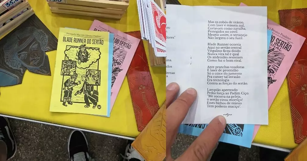 Caracterizado por folhetos rimados e ilustrados com xilogravuras, tradicionalmente vendidos pendurados em cordas, os cordéis são um elemento genuinamente nordestino, e aqui, a aventura criada por Philip K. Dick ganha uma narrativa nordestina criativa. Também na banquinha da Marina V.