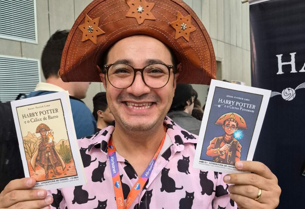 Ainda na linha dos cordéis, Patrick Lima é um fenômeno. A aventura Harry Potter e o Cactus Patronum já vendeu mais de 10 mil cópias desde 2023 e o artista é figura aplaudida na Bienal do livro. Também é possível contar com a arte em sacolas ecológicas, broches, adesivos e outros modelos que podem ser adquiridos direto no perfil do artista no Instagram.