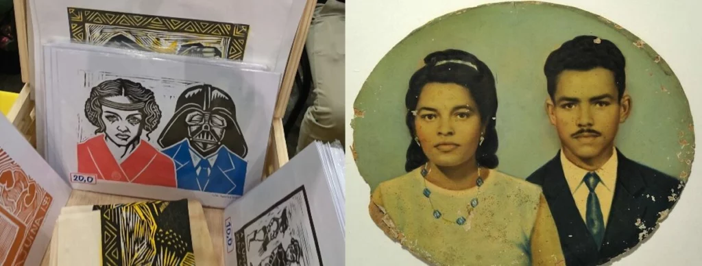 Um elemento clássico da região nordestina é, sem dúvida, o retrato pintado ou fotopintura, uma técnica artesanal que coloria e retocava fotografias em preto e branco, popularizada no século XX para democratizar o acesso a retratos familiares, especialmente no interior no nordeste. Agora, quem for no espaço da Marina V na próxima edição do Sana pode adquirir um retrato pintado de Seu Vadim e Dona Leia.