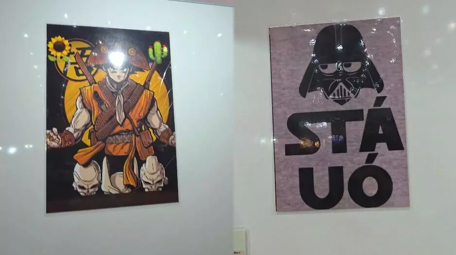 Talvez o artista que mais explora a temática nordestina no evento, Felipe Arrais é o Ilustrador que assina o resto dessas obras abaixo, que costuram elementos da cultura pop com linha nordestina e um toque de humor local.